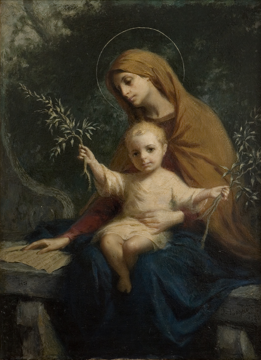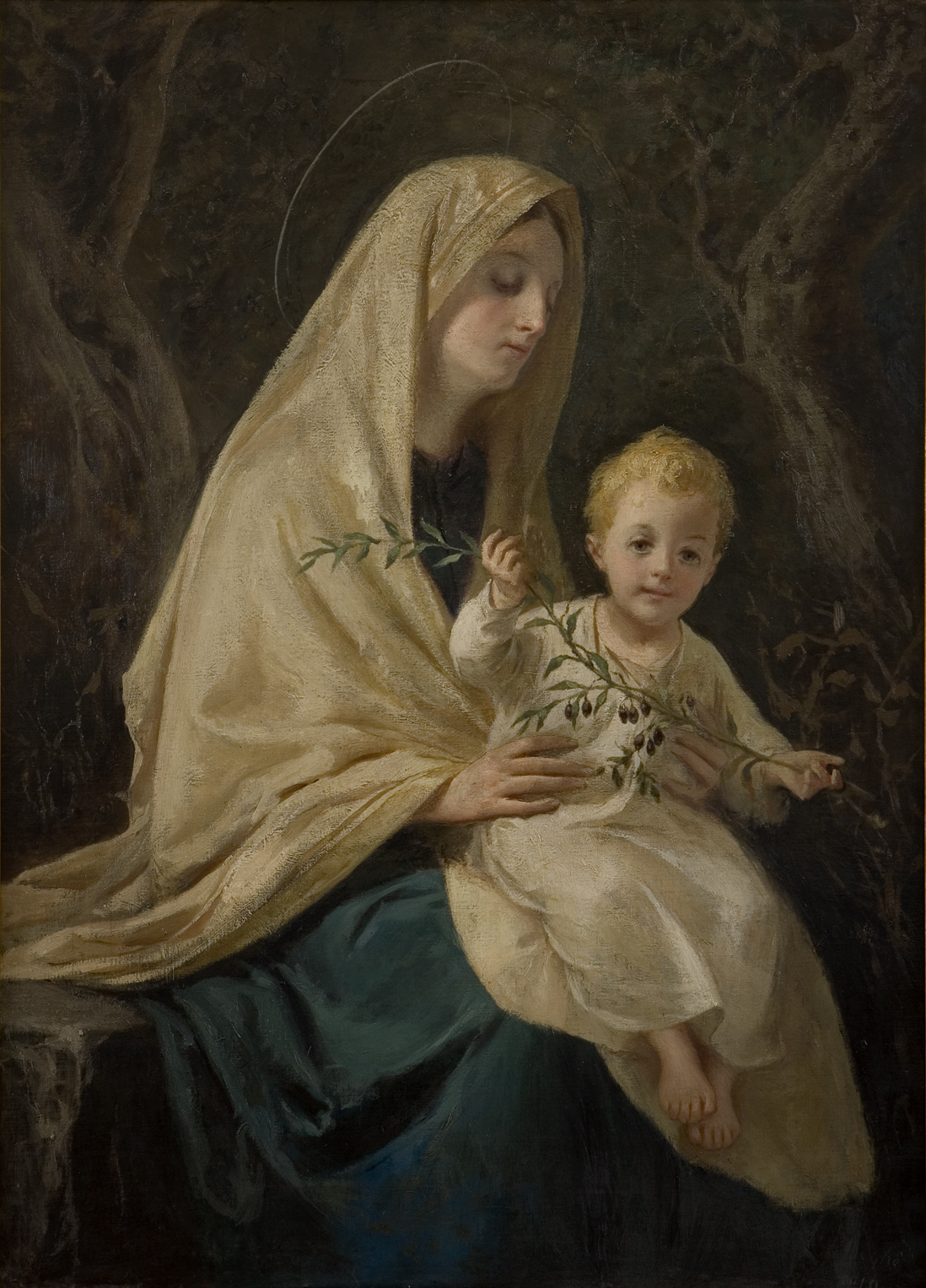 Nell’ambito di quella che potrebbe essere definita la “produzione barabiniana” di Beghé, questa Madonna rappresenta una delle prove migliori, soprattutto dal punto di vista tecnico. Il tema della Madonna dell’Ulivo, spesso presente nella sua opera, è qui trattato con toni quasi monocromi, la Madonna di tre quarti, il Bambino di fronte ed un raffinato gioco di contrasti fra il ramo d’ulivo, la luminosità delle figure e l’uliveto scuro sullo sfondo.