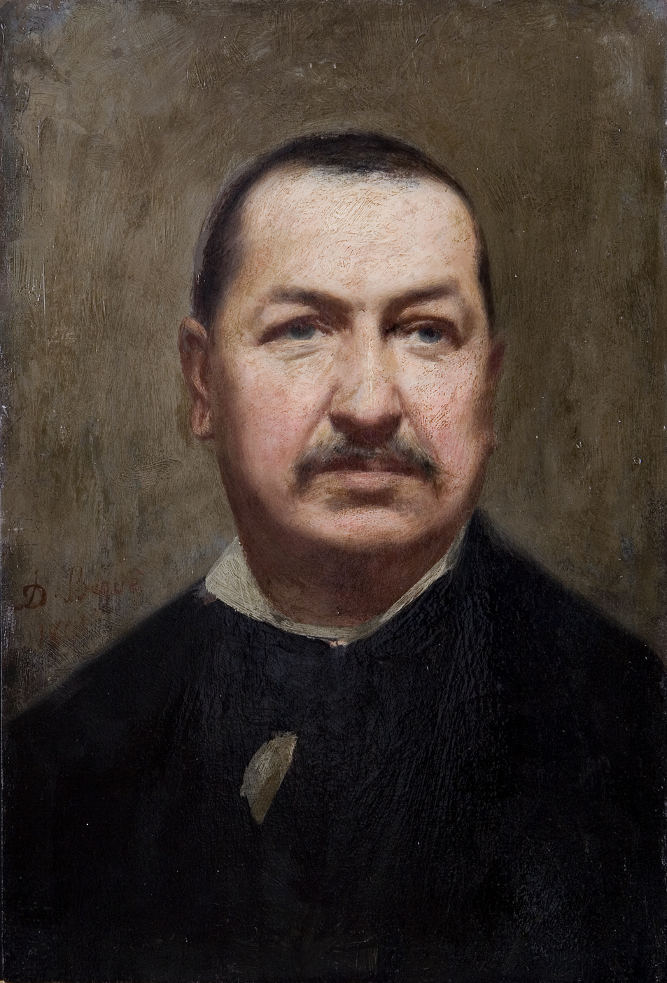 Il ritratto ovale presenta i caratteri tipici del realismo ottocentesco: sono evidenziati infatti gli aspetti somatici e psicologici del personaggio ritratto, un imprenditore ligure suocero di Beghé. Come nell’autoritratto citato precedentemente, non mancano i riferimenti alla pittura veneta del Cinquecento nel contrasto bianco-nero e nella catena dell’orologio, accennata senza descriverla.